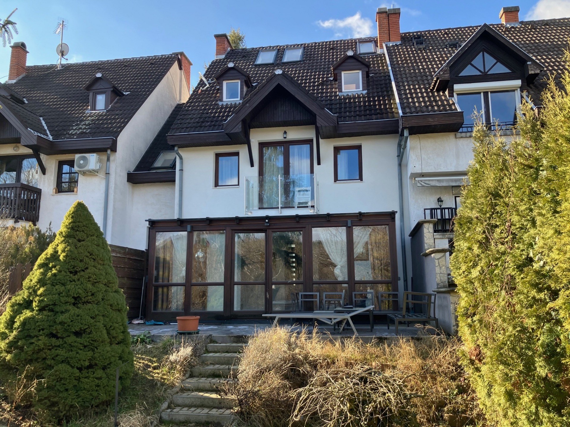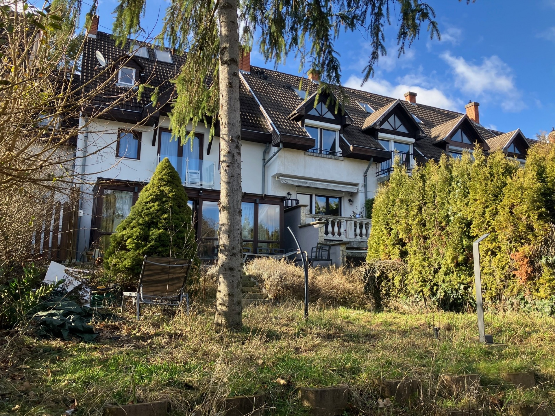 Megvételre kínálunk Budapest II. kerület Pesthidegkút ófalui részen festői környezetben lévő 256 m2 - es, kertkapcsolatos nappali + konyha + 4 szoba + 4 fürdőszoba + kondicionáló szoba + 2 gardrób + erkély + grandiózus terasszal rendelkező körbenapozott ikerházat, 380 m2-es gondozott kerttel.
