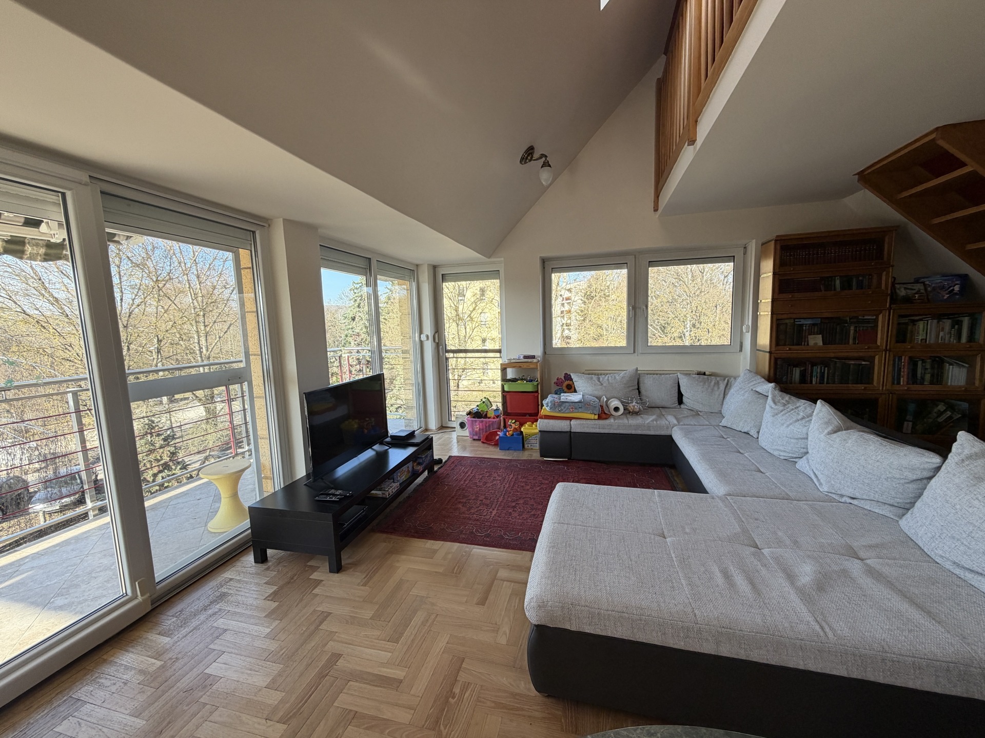 Budapest egyik legzöldebb, nyugodt környékén kínálunk megvételre egy 113 m²-es, nappali + 2 hálószobás, galériás, kiváló elosztású, téglaépítésű lakást egy mindössze 3 lakásos, rendezett társasházban.