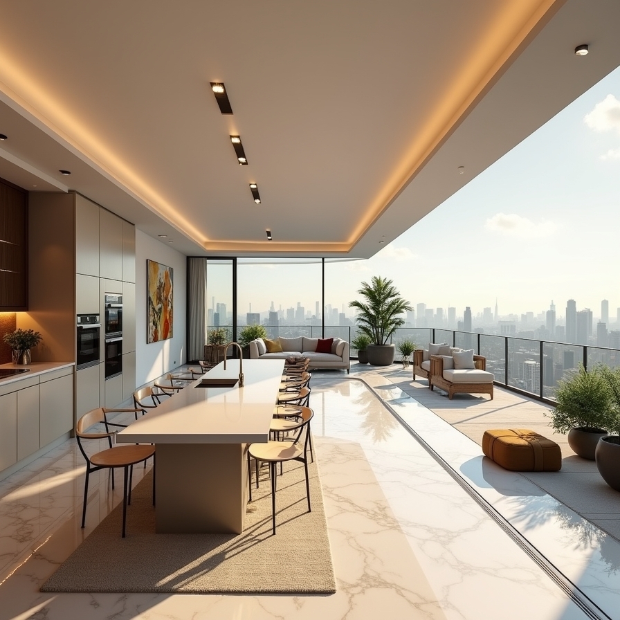 A grandiózus méretű panorámás tetőkertben jacuzzi, szauna és grillező teszi exkluzívvá az ott lakók életét.